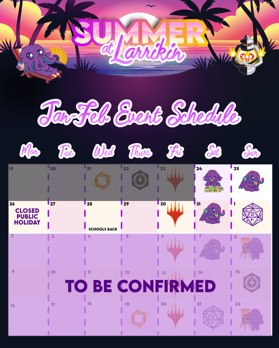 We have jam packed January full of events to keep the fun rolling before we all go back to work and school. We will be adding details to this page as we finalise the details.
